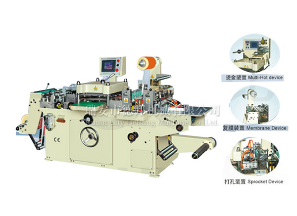 該機以平壓平高精度模切,拖料及切片由伺服電腦控制,印刷標兩面三刀邊及縱向由三只光電眼精確跟蹤定位,模切、收廢、切片或自動貼標機用的卷筒收卷一次完成。非常適用于紙張不干膠商標、絳綸薄膜商標及鐳射偽商標的模切。該機是全輪轉(zhuǎn)高速卷筒商標印刷機、柔性版印刷機、連續(xù)絲印機、凹版印刷機及防偽商標模壓機配套設(shè)備,是各商標印刷廠配套高效率的機型。還適用于電子行業(yè)、膠粘帶制品行業(yè)模切成型設(shè)備。